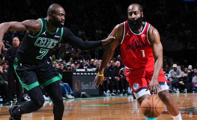 那快船呢?当比尔赛季报销,小卡此前饱受伤病困扰时,快船只剩下哈登维持基本盘,哈登场均28分8.4助攻5.8篮板,太累了!那为什么放弃鲍威尔?为了在明夏腾出薪资空间,也同时为给小卡在四号位找一个帮手,快船休赛期在送走鲍威尔前几天,还进行过初步的谈判,结果鲍威尔随即被告知自己被交易。换来的科林斯,来到快船后水土不服。打替补还行,可是打首发场均只有8.9分4.6篮板,两项命中率低至38.6%+15%。没有防守就不多说了,关键他还没有稳定投射,在场如同无头苍蝇一般,经常和祖巴茨跑位重复。